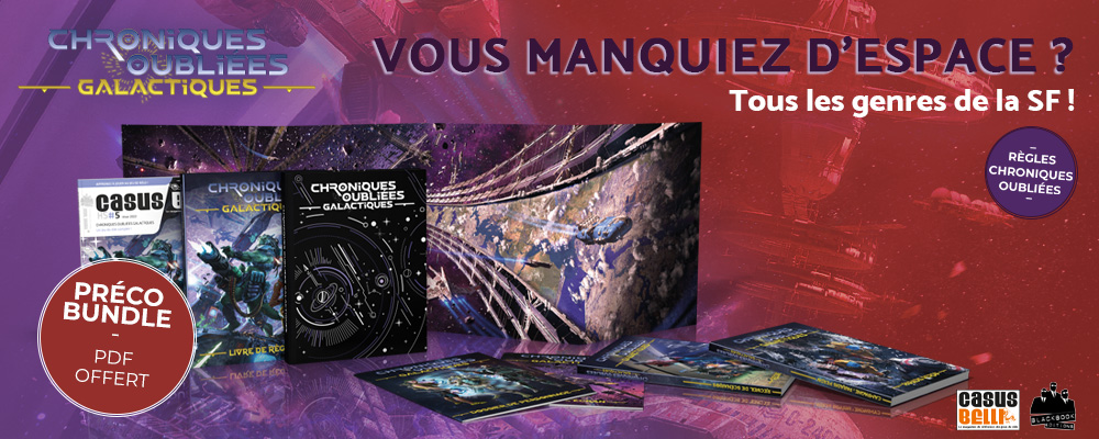 Les ouvrages Chroniques Oubliées Galactiques, un jeu de rôle futuriste présentant 3 époques et ambiances de jeu différentes, sont toujours disponibles en préco Bundle sur le Black Book Shop !
