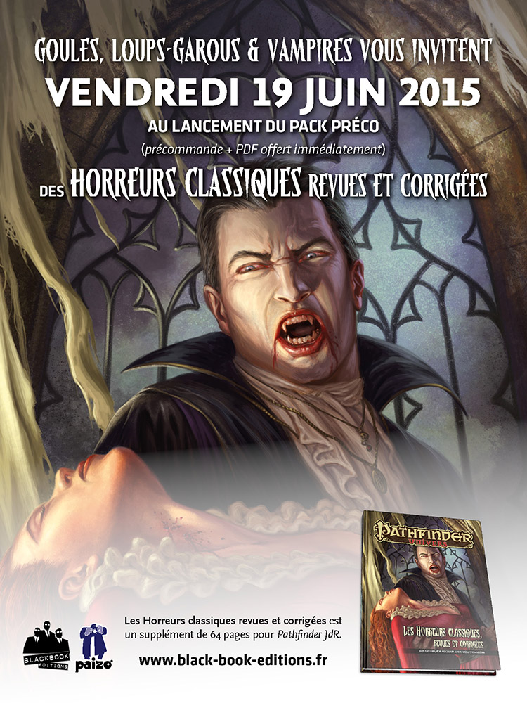 Et avant de vous souhaitez bon week-end, notez qu'il ne vous reste plus qu'une semaine pour profiter du Pack préco d'Au coeur des pyramides, qui s'achèvera vendredi 19 juin prochain à 16 heures. Cette double aventure osirienne laissera ensuite la place à un supplément de background Les Horreurs classiques revues et corrigées. Au passage, nous rendons hommage au regretté acteur Christophe Lee qui joua (entre autres) tous les Dracula des films de la Hammer, dont celui du célèbre Dracula, Prince des ténèbres. On peut dire qu'il savait croquer la vie à pleines dents !