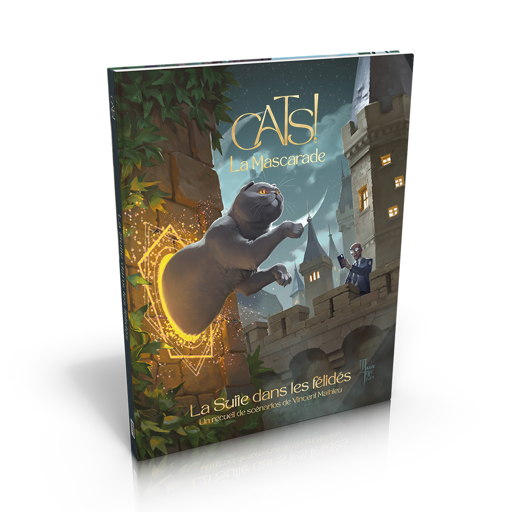 Premier recueil de scénarios pour le jeu de rôle Cats! La Mascarade, La Suite dans les félidés fera frissonner les moustaches de vos joueurs. À eux de se glisser dans la peau d’agents du Conseil de Paris pour sauver le monde ! Enfin, presque. Pour le moment, il s’agit plutôt de charmants recoins français… Les bavures félines se cachent partout !