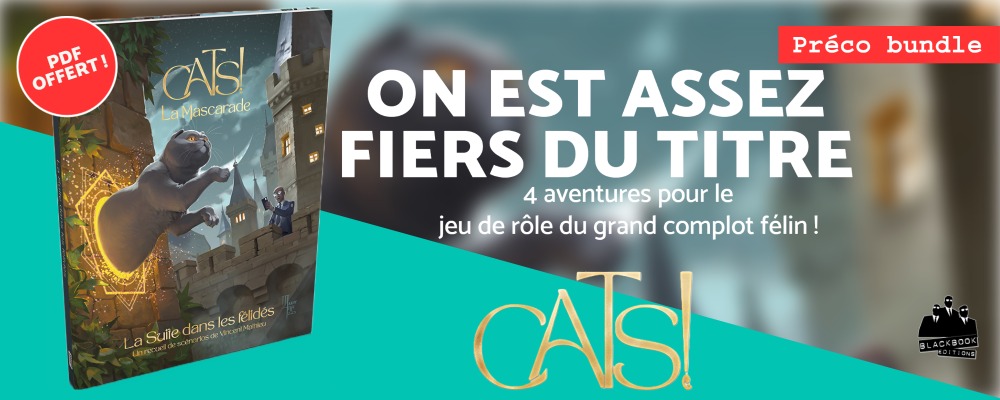 Histoire de fêter l'anniversaire de la sortie du jeu de rôle du grand complot féflin, nous sommes très heureux de lancer le recueil de scénarios pour Cats! La Mascarade : on vous avait dit qu'on avait de La suite dans les félidés !
