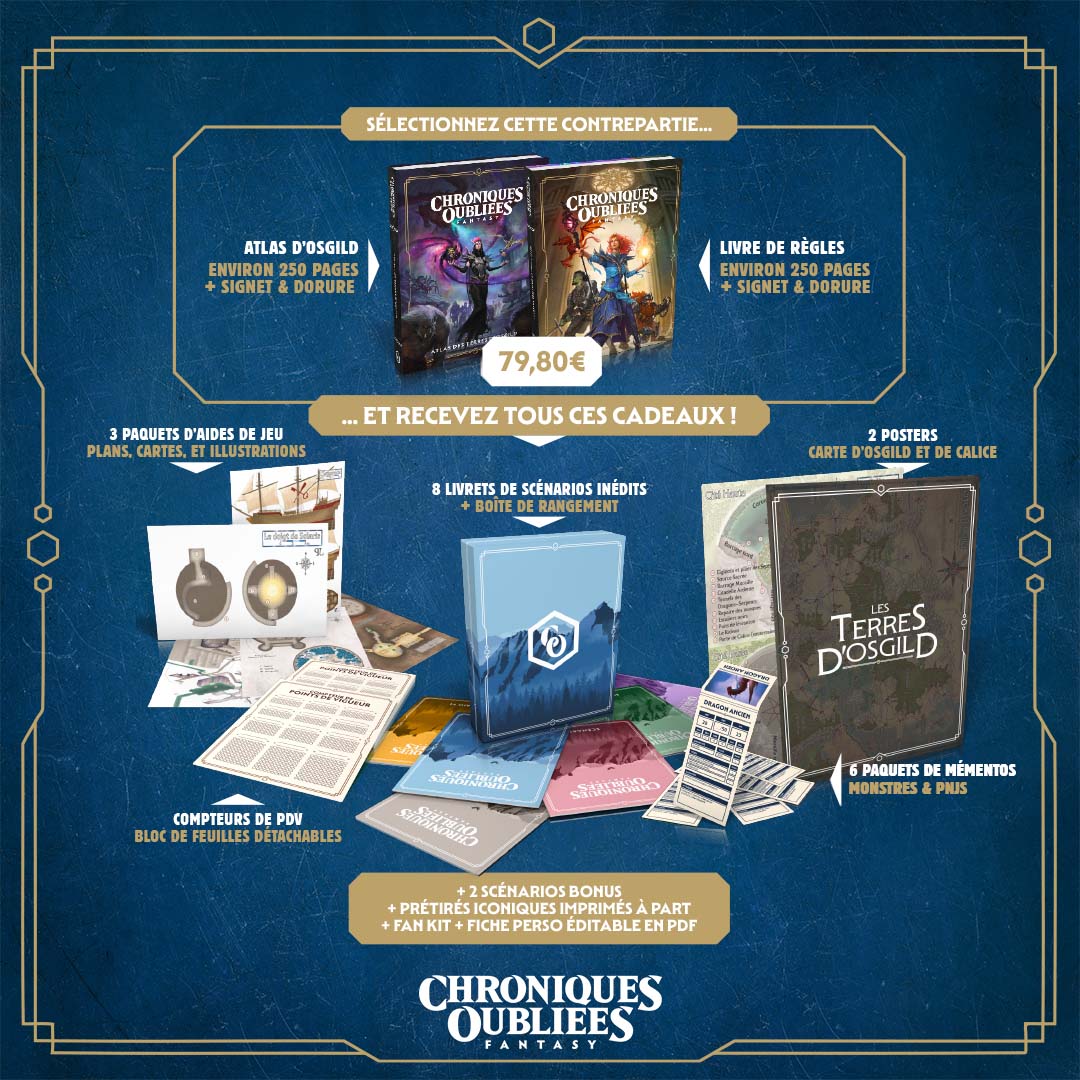 Plus d'une dizaine de cadeaux (dont 8 scénarios inédits sous forme de livrets), des améliorations pour tous les ouvrages, des options très attendues débloquées (comme les cartes de voies) et des nouveaux ouvrages inédits... La précommande pour Chroniques Oubliées 2e édition n'attend plus que vous !