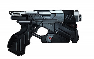 Basé sur les dernières technologies, ce pistolet mitrailleur étonnamment léger et maniable permet d’assurer des tirs de couverture en presque toutes circonstances. Le chargeur incliné permet de réduire les enrayements dus au dysfonctionnement des ressorts, alors que la visée laser intégrée assure que le tireur voit parfaitement où il pointe son arme. Le système de tir électronique permet une combustion complète de la charge des munitions sans douille, tout en réduisant le recul perçu. Équipé de sa crosse pliable standard, l’Evanator peut servir d’arme principale dans les engagements à courte portée.