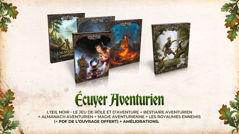 Vous ne connaissez pas l'univers de l'Œil Noir ? Cela tombe bien : les Royaumes Ennemis sont une porte d'entrée parfaite pour débuter en Aventurie ! Nous avons même concocté une contrepartie spéciale débutant regroupant tous les livres essentiels de la gamme avec une baisse de prix de moitié + le supplément régional les Royaumes Ennemis !