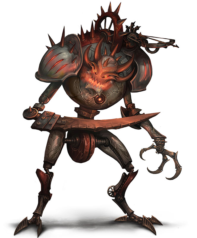 Après vous avoir présenté l'historique du célèbre tombeau du Tyran qui murmure, Gibet, ainsi que les effets morbides des roches étranges des mines de Zolurket, nous vous invitons à un petit voyage illustré pour clore notre série de préview. Si vous voulez en apprendre plus sur les 6 étonnants donjons qui peuplent ce supplément, de la Redoute rouge (et le personnage mécanique ci-dessous) aux cavernes de Pierrechandelle, le passage dérobé permettant d’accéder aux montagnes des Cinq Rois depuis l’Ombreterre (et le sympathique serpent géant ci-dessous), laissez-vous tenter... ce sont vos joueurs qui vont le regretter !!! :)