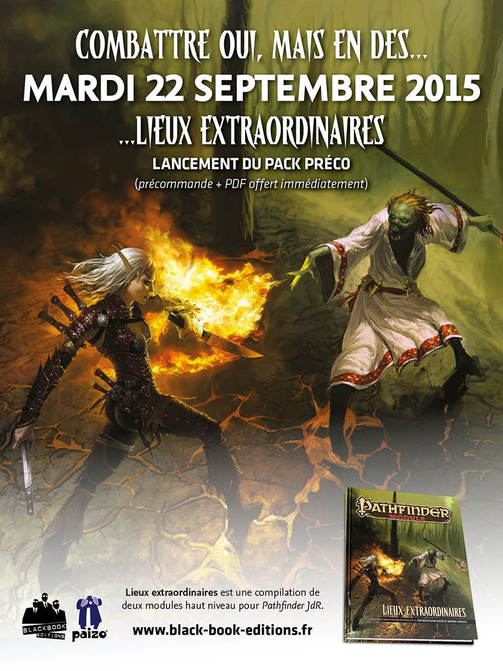 Alors qu'en début de semaine prochaine arrive légèrement en avance le supplément Pathfinder mensuel du mois de septembre (voir ci-dessous), sachez que nous poursuivrons le Pack Préco (précommande + PDF offert immédiatement) de Donjons de Golarion normalement jusqu'au vendredi 25 septembre (encore une dizaine de jours donc).