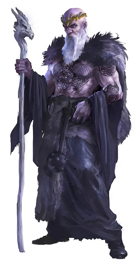Et bien non, sachez que chaque monstre a également droit à sa double page de nouvelles règles (dons, sorts, équipement spécifique), et c’est un exemple de don (en lien avec l’illustration du combattant géant du froid) et d’objet magique (sans doute offert par le mage de glace ci-dessous) que nous vous proposons aujourd’hui, tirés des pages réservées aux magnifiques géants du froid !