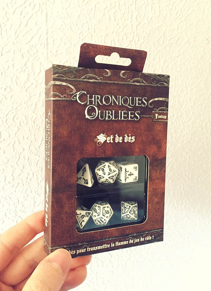 Pour la précommande participative Chroniques Oubliées, sachez que les colis commencent à partir ! Après avoir longuement attendu le magnifique set de dés Q-Workshop dont voici une photo ci-contre, nous avons eu une désagréable surprise (il fallait bien que les drows s'en prennent à la campagne Anathazerïn !) : un dé du set manque à l'appel (le d10 des dizaines pour faire le d100). Pour ne pas retarder les envois, nous l'enverrons séparémment dès sa réception dans 3 semaines environ, alors ne vous étonnez donc pas de recevoir un set de 7 dés qui n'en contient pour l'instant que 6 !