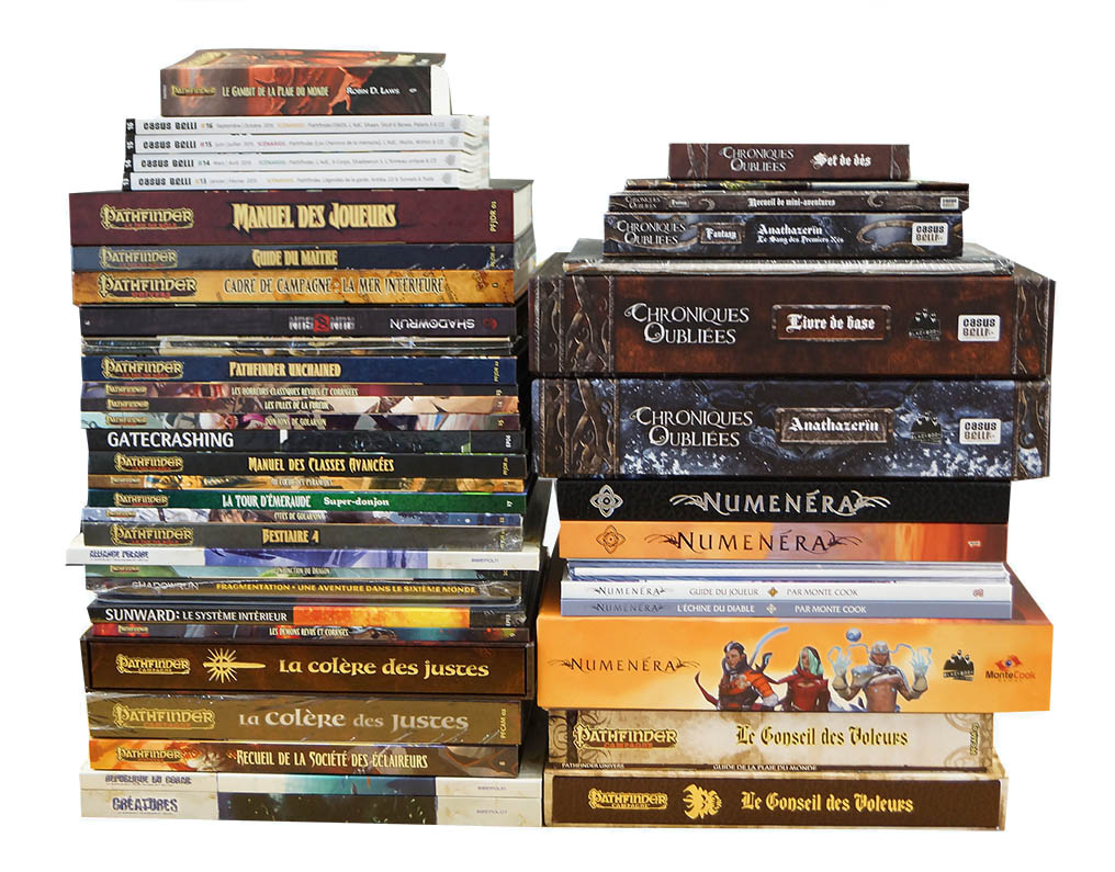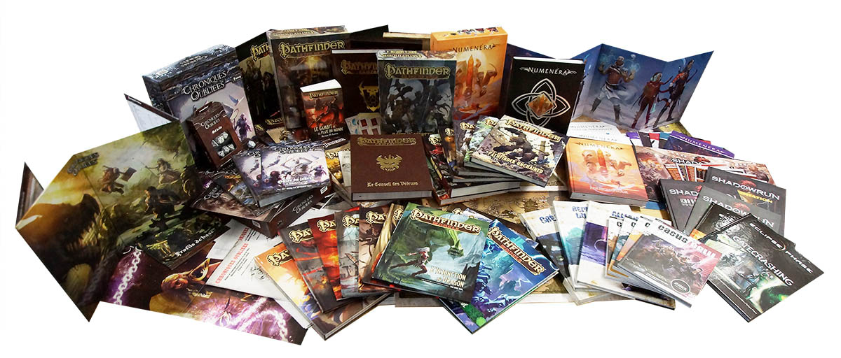 Enfin, sachez que notre compte Facebook vient de dépasser les 5000 abonnés ! Merci à tous de nous suivre tout au long de l’année et de soutenir le retour du JdR au premier plan et c'est tout un symbole de passer cette barre symbolique alors que nous faisions le bilan de l'année 2015, qui aura vu la sortie de pas moins de 50 publications Black Book Editions (!). En rentrant des vacances de Noël, l'équipe n'y croyait tellement pas que nous avons été obligé de sortir tous les ouvrages devant eux. L'occasion de faire deux photos pour le moins parlante de ce que nous avons réalisé pour vous l'année passée :