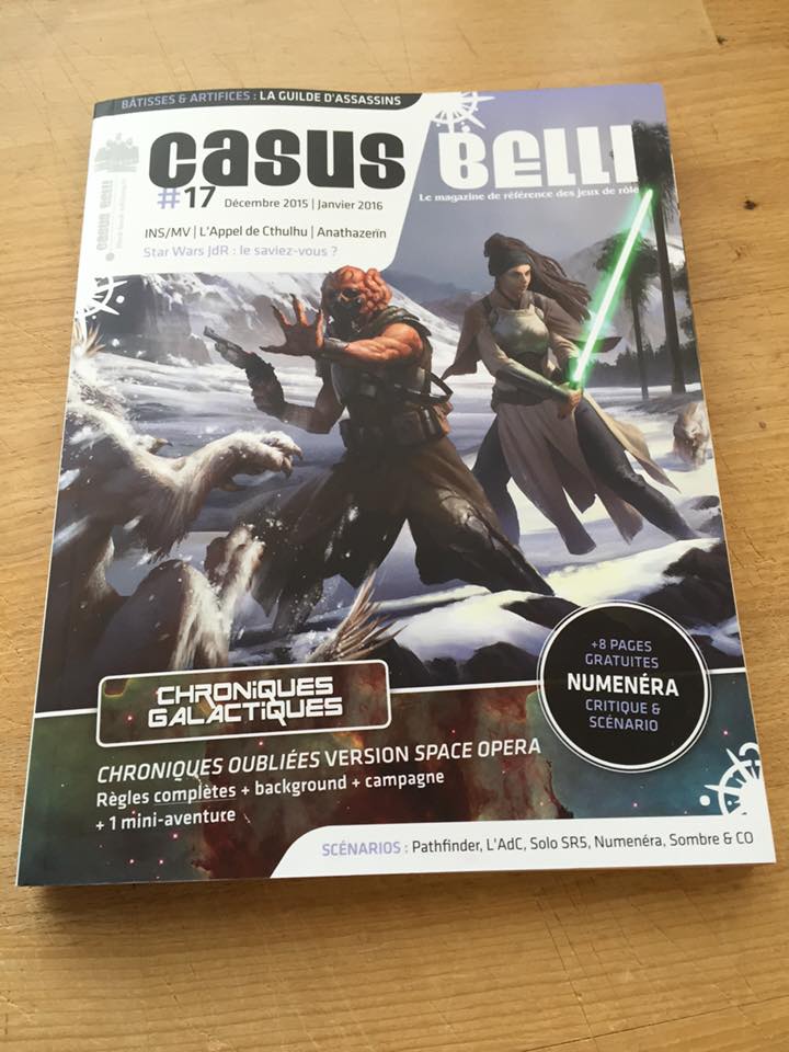 Alors que l'actualité rôliste est enflammée par l'annonce de la traduction de la 5e édition du plus ancien des jeux de rôle en français, nous venons de recevoir nos exemplaires de Casus Belli #17, donc voici une petite photo ci-dessous.